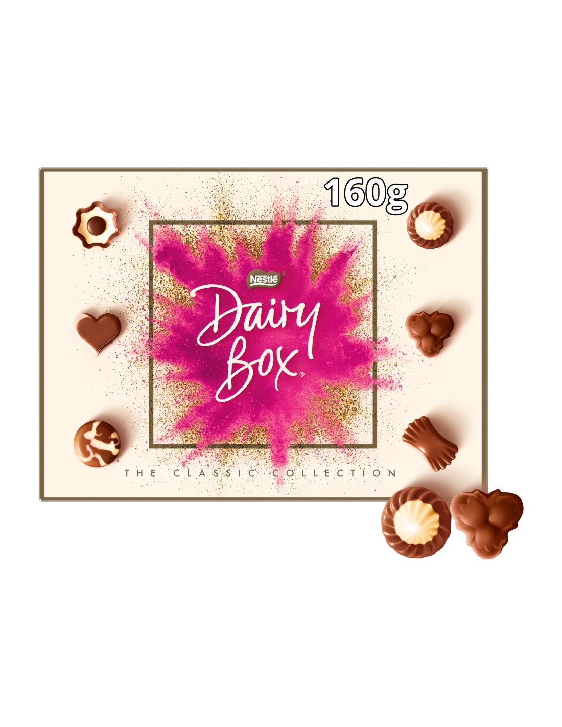 Dairy Box offers a delicious selection of milk chocolates. Select from 16 delicious milk chocolates in a variety of truffles and pralines: Vanilla Cup, NEW Salted Toffee, RE-CREATED Chocolate Velvet, Hazel Smooth, RE-CREATED Cookies & Crème, Caramel Heart, NEW Strawberry Kiss, RE-CREATED Orange Surprise.