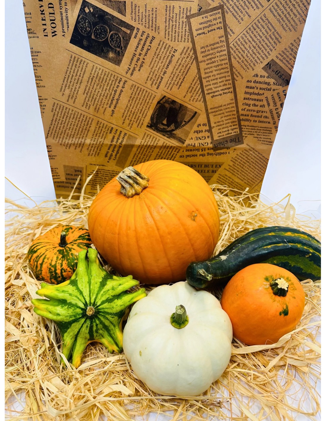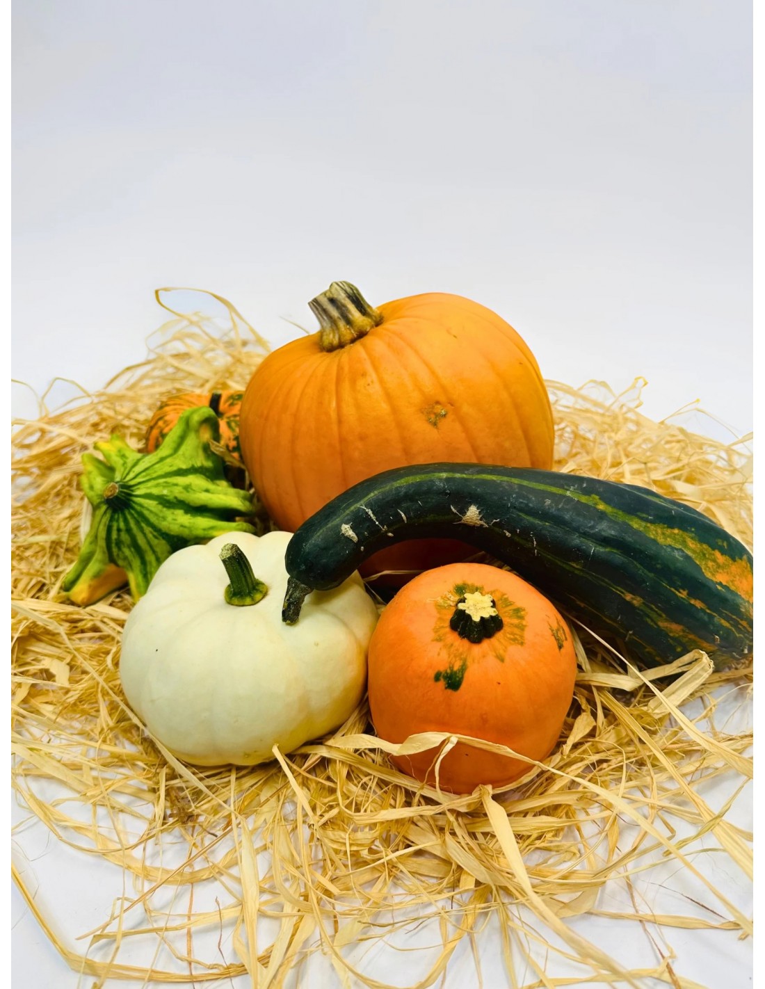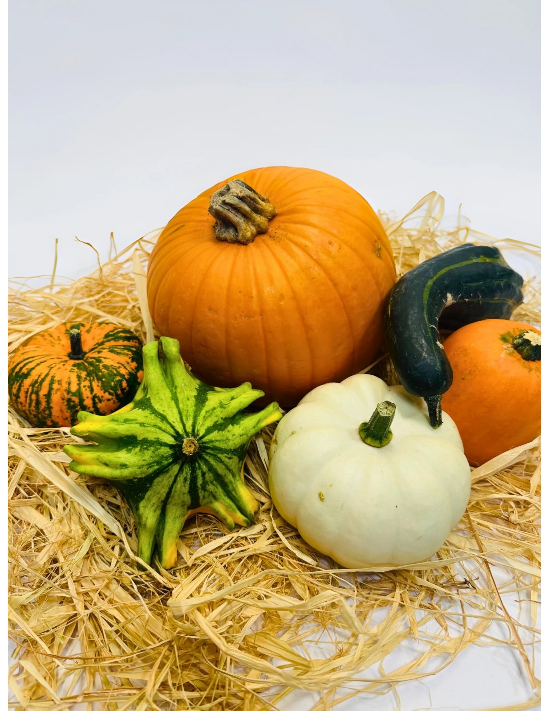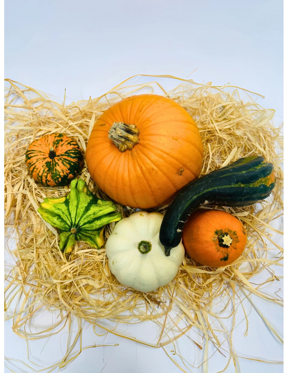 Mixed Pumpkin Selection - a curated assortment of 6 pumpkins in various sizes and shapes, perfect for celebrating the spooky season or creating an autumn centrepiece.