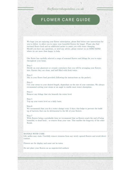 - Care instructions on how to look after your flowers