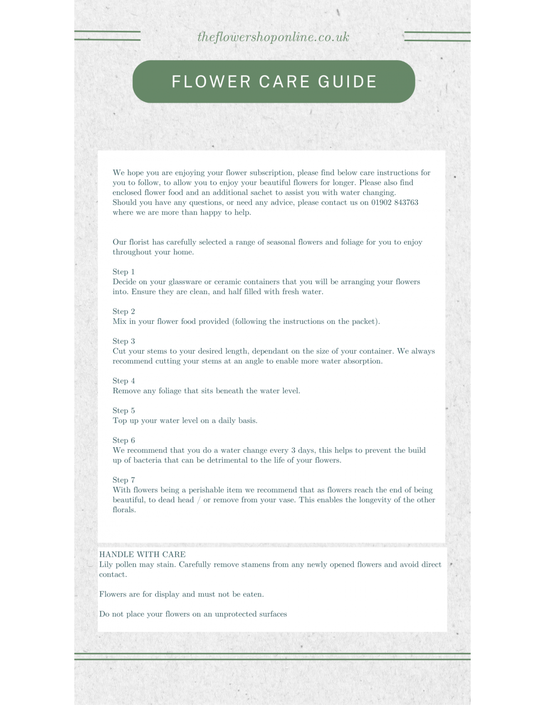 Each delivery will come with a care kit to ensure you can get the best out of your blooms, which includes: